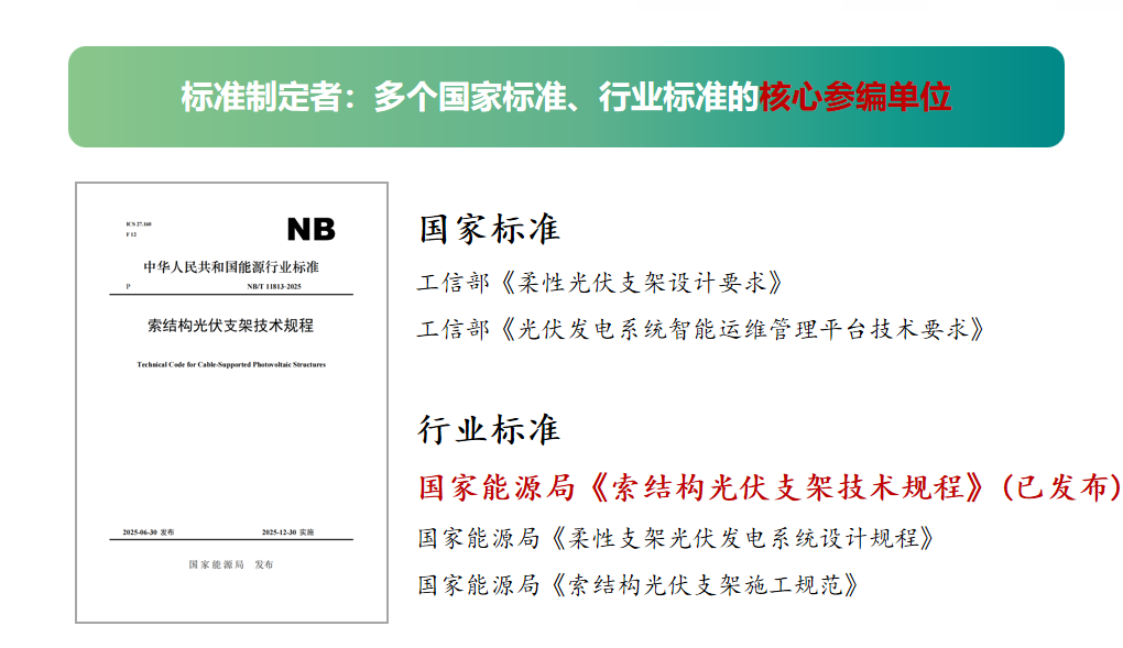 作为行业技术领军企业,HYPSET还深度参与了国家能源局《索结构光伏支架技术规程》、工信部《柔性光伏支架设计要求》等多个国标和行标的编制工作,为推动行业安全标准提升做出重要贡献。
