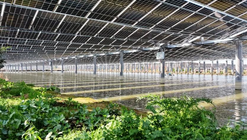 同时,HYPSET利用柔性光伏支架系统的大跨度设计减少了桩基数量,极大降低了对鱼塘养殖活动的干扰,并通过科学计算的排间距,保证了充足的水下光照,实现了光伏发电与高端养殖的完美融合,诠释了真正的“渔光互补”。