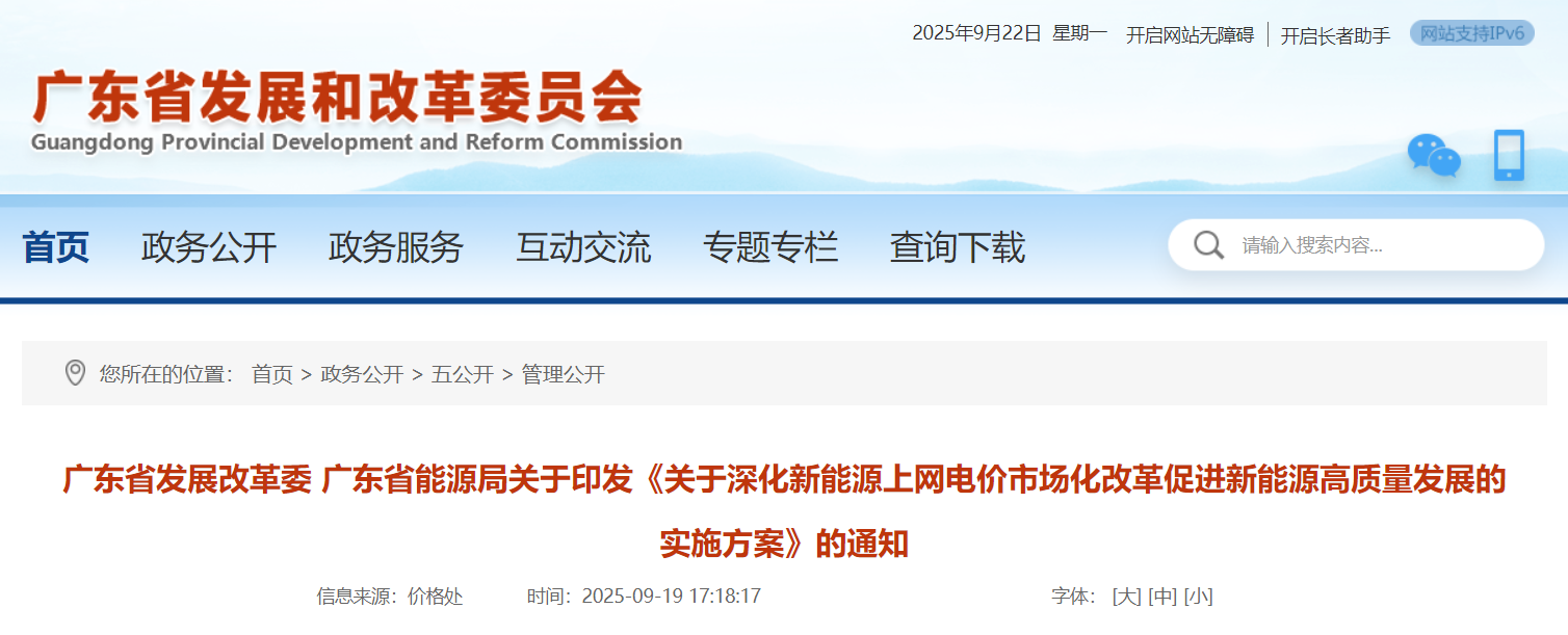 9月19日,广东省发展改革委、广东省能源局联合发布了关于印发《关于深化新能源上网电价市场化改革促进新能源高质量发展的实施方案》的通知,根据文件: