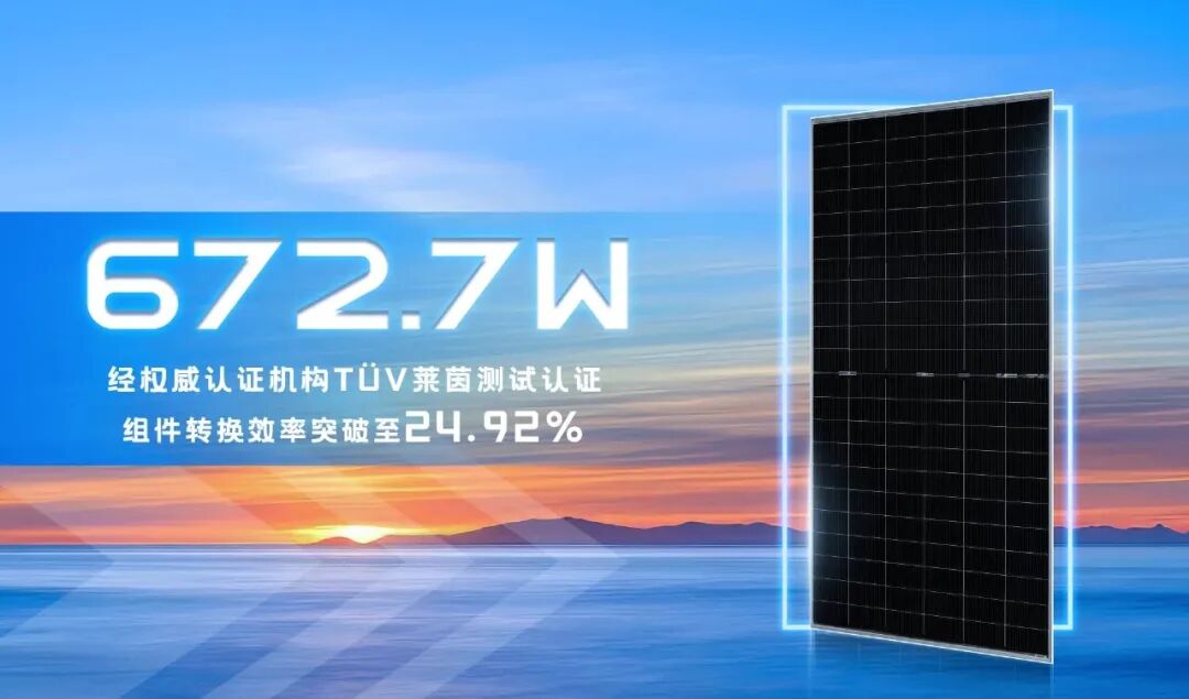 2025年9月16日,润阳股份以技术创新为笔,再次刷新纪录,书写属于自己的高光时刻。经权威机构 TÜV莱茵测试认证,江苏润阳新能源科技股份有限公司(以下简称“润阳股份”)自主研发的N型TOPCon-SMBB半片组件在2382*1134mm标准尺寸下,组件正面功率达到672.7W,较市场同版型组件功率提高约50W,转换效率突破至24.92%。刷新了同类型产品的功率和效率纪录。