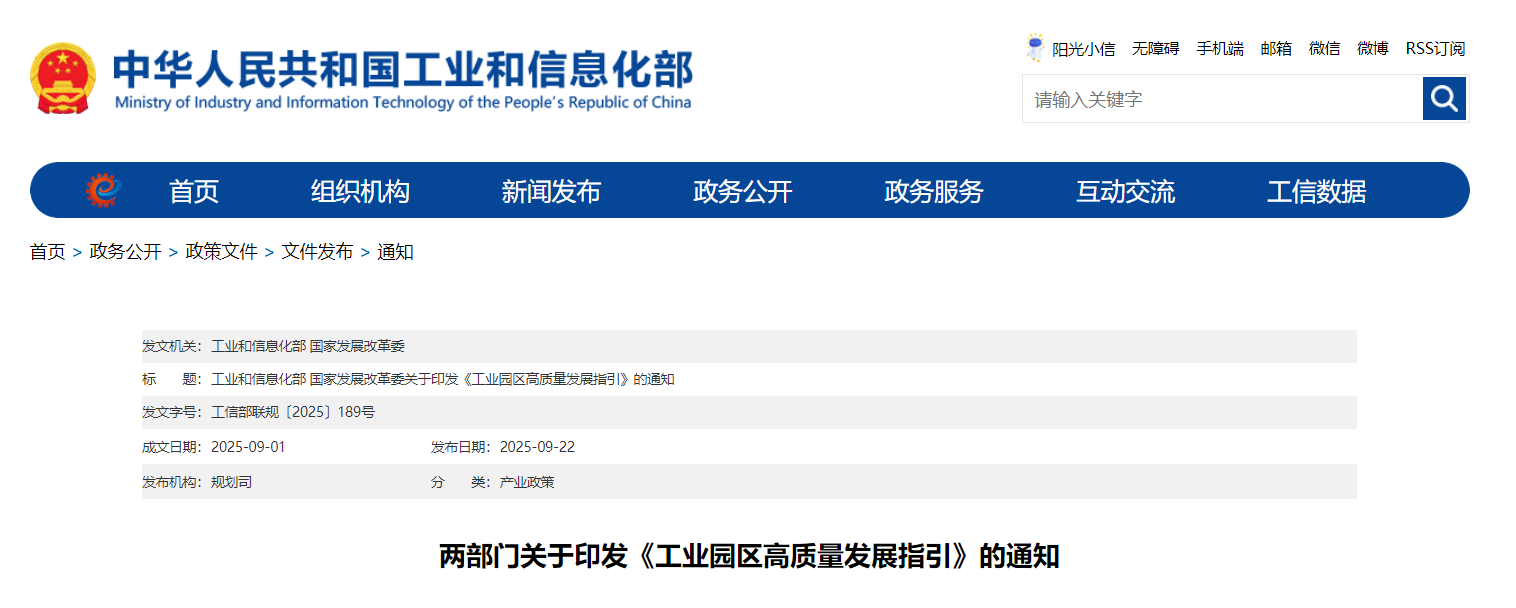 工业和信息化部 国家发展改革委关于印发《工业园区高质量发展指引》的通知