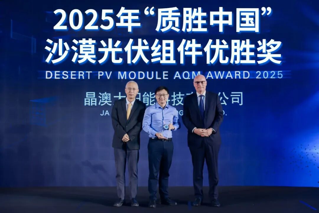 9月24日,由国际权威独立第三方检测检验和认证机构德国莱茵TÜV集团(简称“TÜV莱茵”)主办的2025第十一届“质胜中国”光储盛典暨优胜奖颁奖典礼在江苏隆重启幕。在今年的评选体系中,对光伏产品、光储充产品、电站及供应链服务三大板块进行了创新和优化,新增了沙漠光伏赛道,晶澳「漠蓝」在诸多产品的激烈角逐中,一举斩获该赛道首顶桂冠,创“质胜中国”沙漠光伏组件优胜奖之先河!