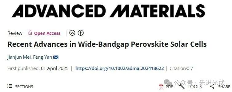 Mei, J., Yan, F. Recent Advances in Wide-Bandgap Perovskite Solar Cells. Advanced Materials. 2025, 2418622.