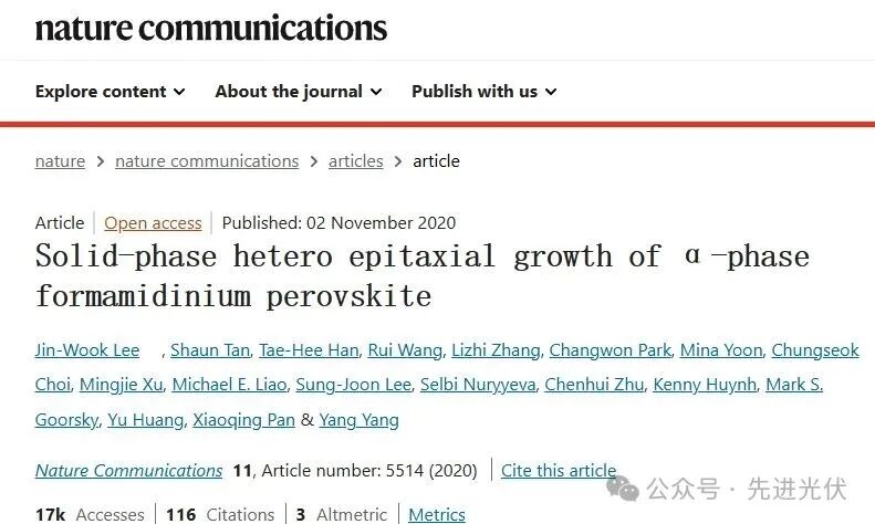 Lee, J.-W., Tan, S., Han, T.-H., et al. Solid-phase heteroepitaxial growth of α-phase formamidinium perovskite. Nature Communications, 2020, 11: 5514.