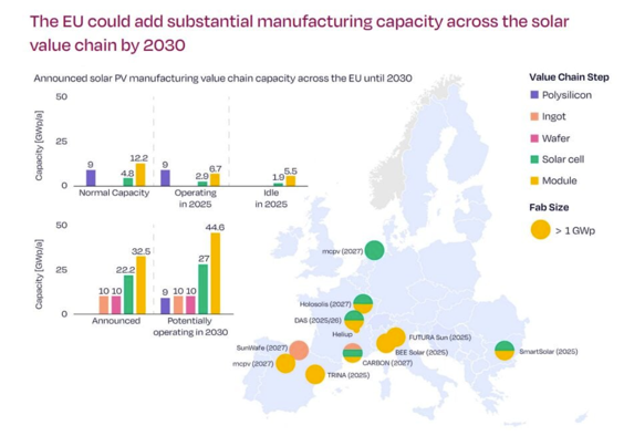 欧洲太阳能协会首席执行官瓦尔布尔加·赫梅茨贝格尔(Walburga Hemetsberger)表示:“这份新报告强调,只要制定正确的政策,欧洲就能在2030年前实现30GW的太阳能制造产能,创造数千个本地就业岗位,并构建一条具有韧性、创新性的太阳能供应链,将经济价值留在国内。为实现2030年目标,欧盟及其成员国必须迅速行动。若不加以干预,欧洲将面临丧失太阳能领域剩余工业和技术能力的风险。”