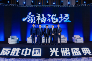 从左至右:TÜV莱茵全球电力电子产品服务副总裁兼大中华区太阳能与商业产品服务副总裁李卫春、隆基绿能科技股份有限公司集团副总裁佘海峰、通威股份有限公司总裁助理兼通威太阳能科技有限公司总经理萧圣义、金阳新能源科技控股有限公司总裁何双权、思格新能源股份有限公司总裁张先淼