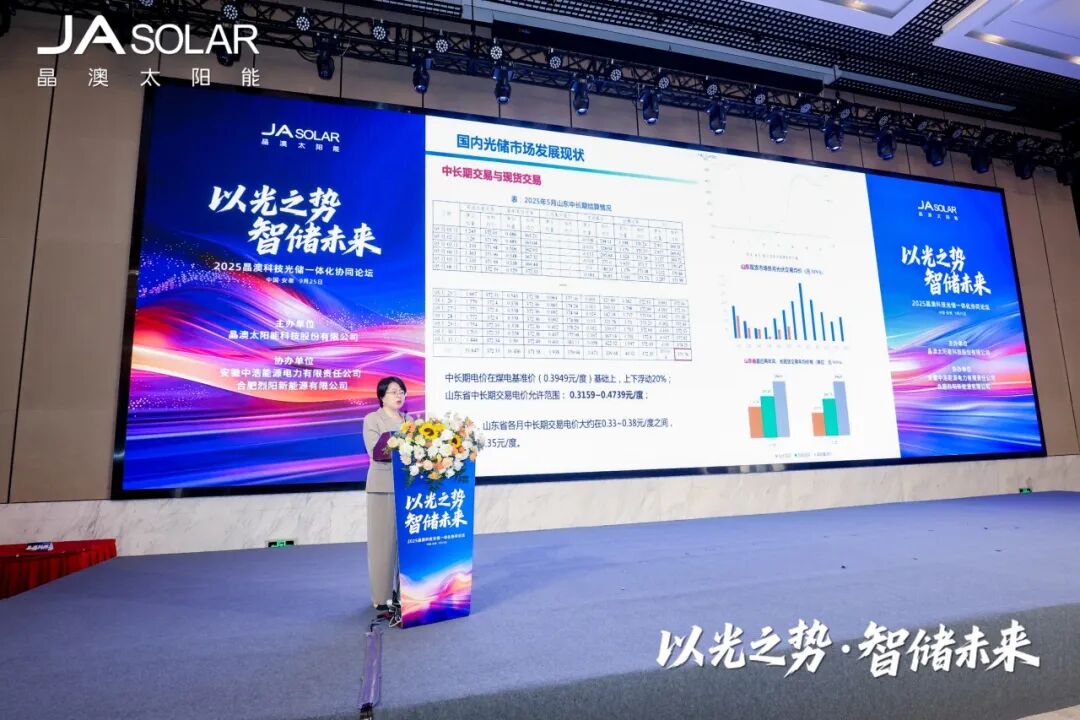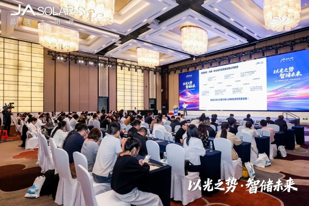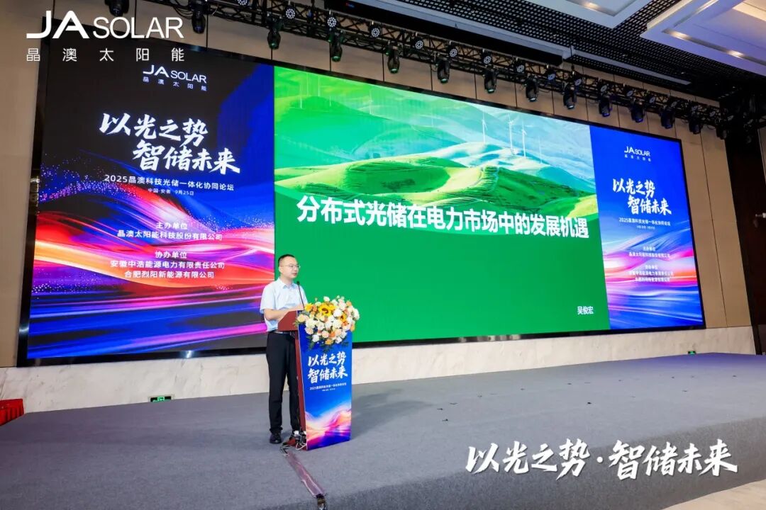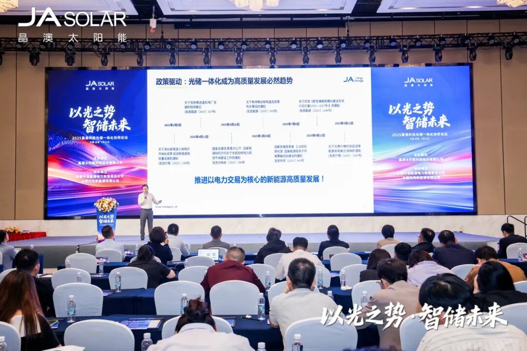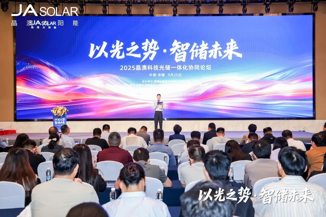 9月25日,由晶澳科技主办,安徽中浩、合肥烈阳协办的2025晶澳科技光储一体化协同论坛在中国书法大厦成功举办。本次大会以“以光之势·智储未来”为主题,汇聚行业专家、合作伙伴及客户代表等150余位嘉宾,共同探讨光储一体化发展路径,推动能源结构优化与渠道生态共建。
