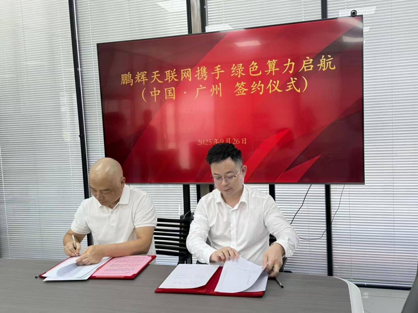 2025年9月26日上午,在中国广州鹏辉能源科技股份有限公司(股票代码:300438)总部,鹏辉能源旗下诺瓦基鹏辉(广东)新能源科技有限公司(以下简称“鹏辉新能源”)与天联网绿色算力科技有限公司(Skylink Green Calculation Technology Limited)签署全球战略合作协议,共同推进新能源在海外算力领域的应用合作。