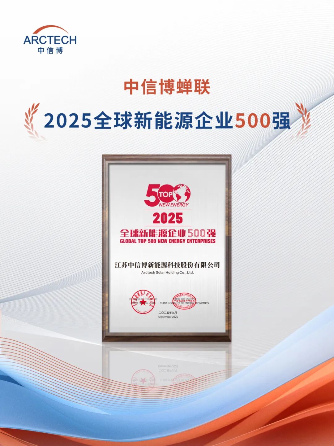 9月27日,山西省能源局、中国能源报联合主办的2025新能源产业创新合作暨第十五届新能源企业500强论坛于山西太原盛大举办。大会同期发布了“2025全球新能源企业500强”榜单,中信博凭借在新能源领域的卓越成就及影响力再度上榜全球新能源企业500强,较上年再度提升82位,彰显了公司持续增长的全球竞争力与行业影响力。