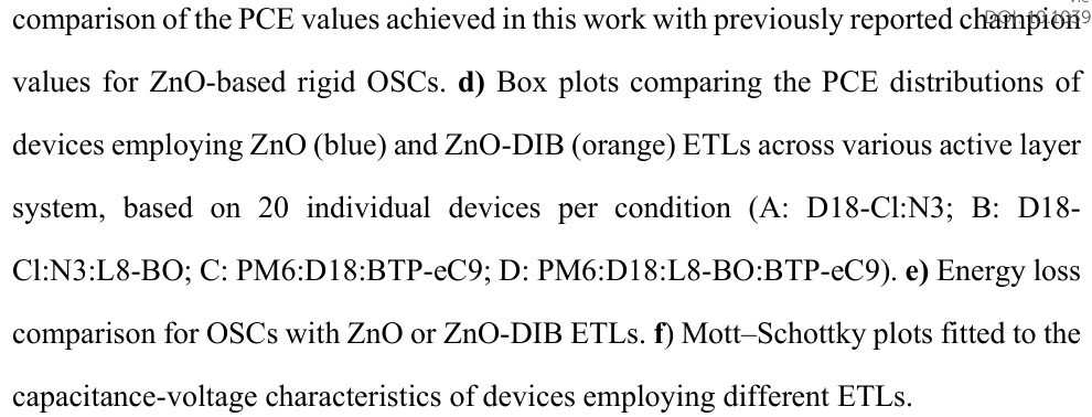 - 实现传统结构OSC效率突破:刚性器件效率达20.1%,柔性器件达19.1%,均为ZnO基ETL器件的最高纪录。
