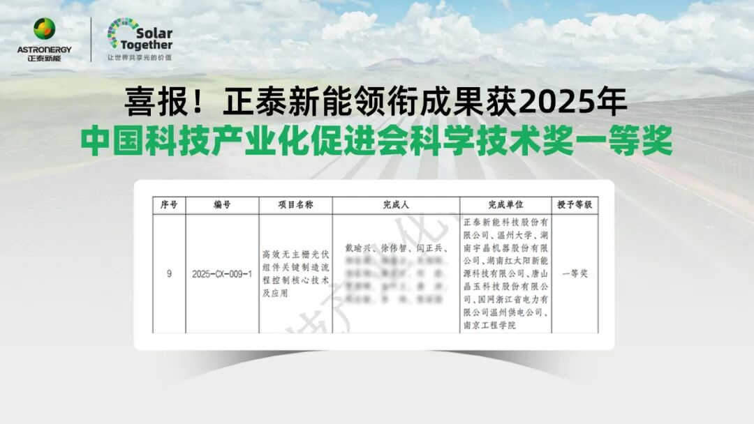 此次正泰新能荣获一等奖,不仅代表着一项技术荣誉,更意味着无主栅技术作为下一代高性能光伏组件的重要发展方向,已获得产业界的广泛认同,市场应用前景广阔。未来,正泰新能将继续深化在高效光伏技术领域的研发投入,持续引领产业进步,为构建清洁、低碳、安全、高效的新型能源体系贡献“正泰力量”。