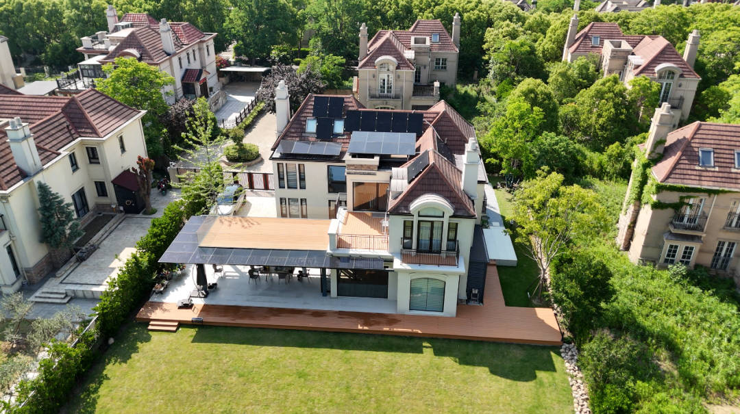 在江苏昆山一座18kW的别墅屋顶光伏项目中,正泰新能与正泰安能联合打造了一套光储充热整体解决方案。该项目在屋顶上安装了多块ASTRO N7s全黑组件,将清洁能源发电功能与高端住宅建筑美学无缝融合。自2025年5月并网后,预计年发电量可达约26338度,不仅能满足家庭大部分用电需求,每年还可减少二氧化碳排放超7.9吨,实现了环境价值与经济价值的共赢,为高端绿色建筑领域树立了全新标杆。