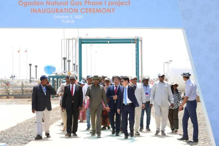 当地时间10月2日,地处东非大陆欧加登盆地的埃塞俄比亚索马里州Calub营地晴空如洗、彩旗招展,在埃塞俄比亚总理阿比·艾哈迈德·阿里,副总理特梅斯根·蒂鲁内,索马里州州长穆斯塔法·穆罕默德·奥马尔,矿业部部长哈布塔姆·泰格恩,中国驻埃塞俄比亚领事馆代办孙明晰,协鑫集团董事长朱共山等领导的共同见证下,协鑫集团埃塞俄比亚20万方撬装液化天然气(LNG)工厂正式投产,向“一带一路”中非能源合作、中埃塞两国建交55周年献上了一份厚礼。