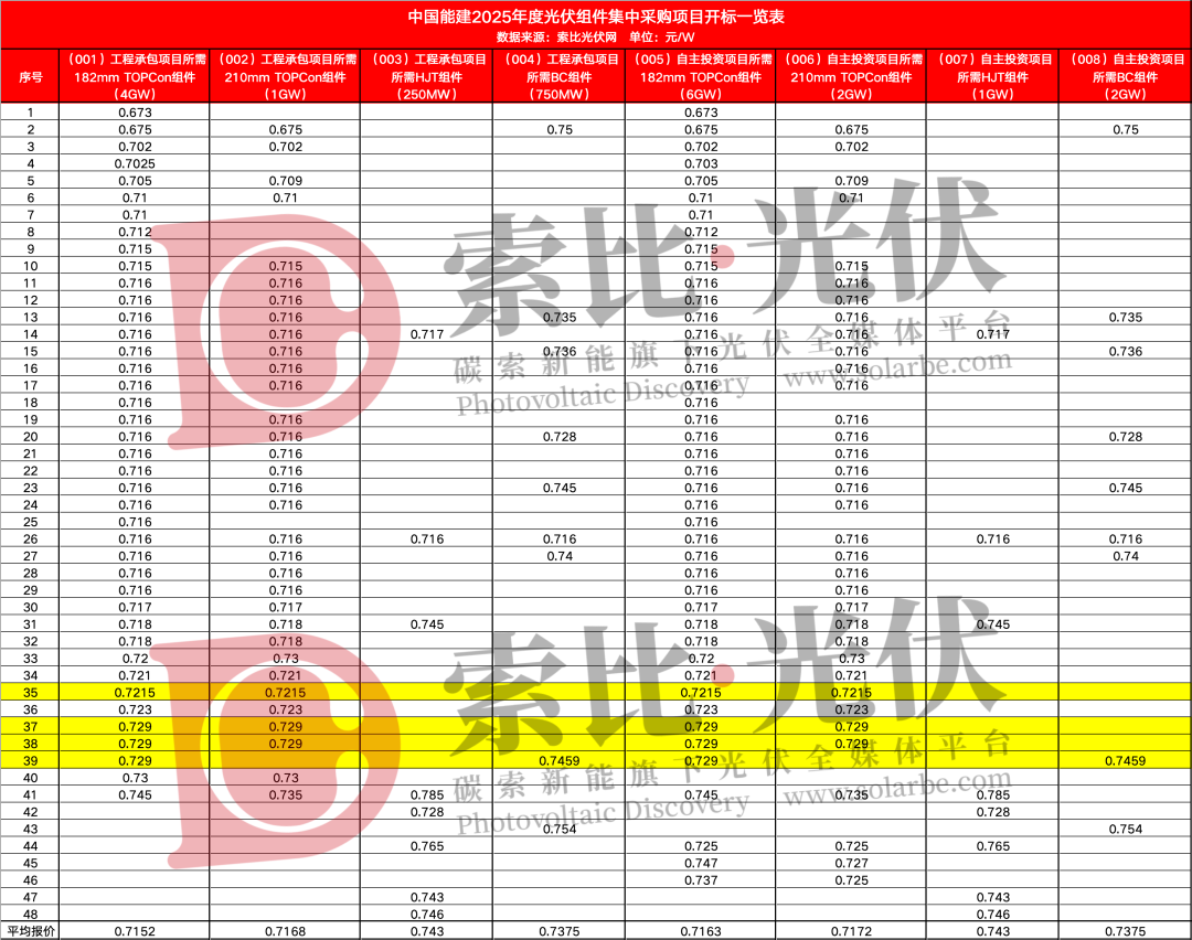 近日,中国能建2025年度光伏组件集中采购项目招标已开标。
