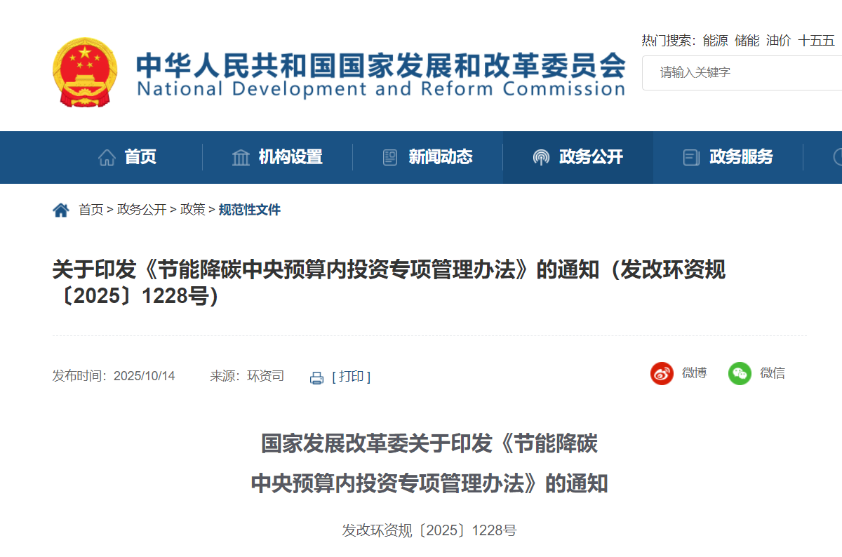 10月14日,国家发改委印发《节能降碳中央预算内投资专项管理办法》的通知。通知指出,重点行业领域节能降碳项目。支持电力、钢铁、有色、建材、石化、化工、机械等重点行业节能降碳改造。支持以工业园区、产业集群为载体整体部署并规模化实施的节能降碳改造。支持供热、算力等基础设施节能降碳改造。支持中央和国家机关节能降碳改造。煤炭消费清洁替代项目。支持煤电机组和煤化工项目低碳化改造。支持食品、烟草、纺织、造纸、印染等行业燃煤锅炉、工业窑炉,实施清洁能源替代。支持城乡居民采用地热能、生物质能供暖。