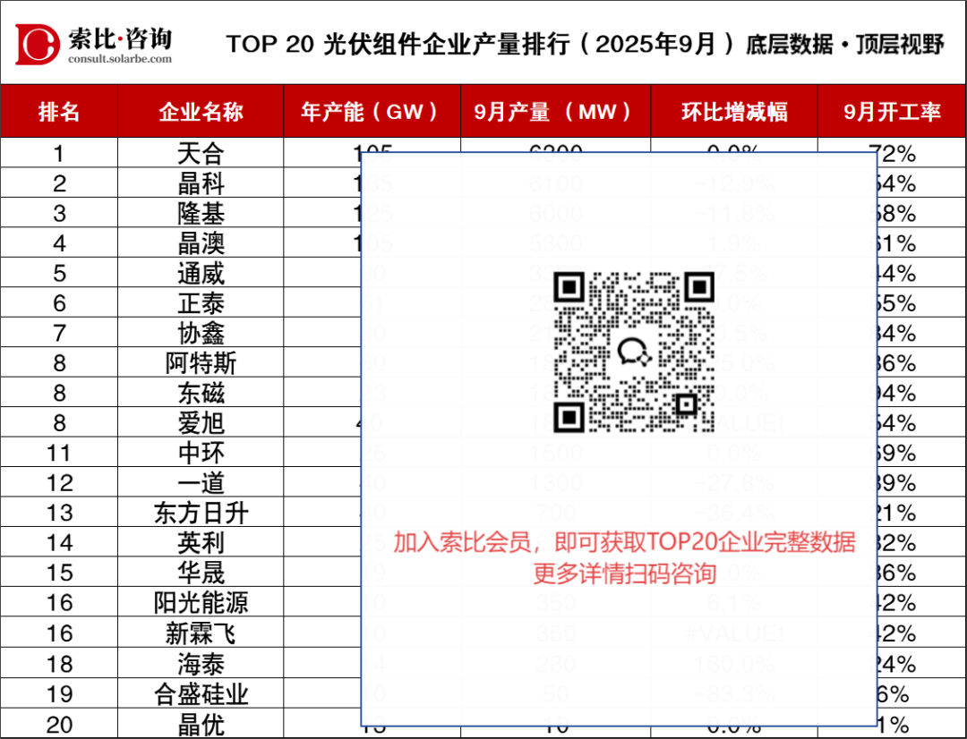本榜单由索比咨询发布,聚焦中国光伏组件企业产量、产能匹配度及生产节奏 ,通过年产能、月度产量、环比变动、开工率四大核心指标,多维呈现行业生产端真实生态。