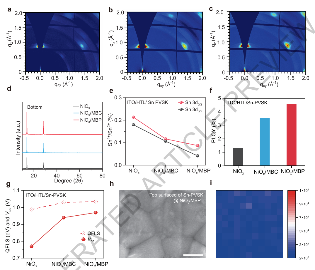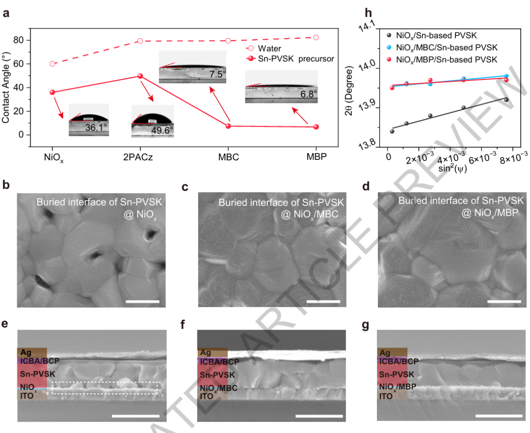 锡基钙钛矿太阳能电池(TPSCs)作为一种前景广阔的无铅、环境友好型光伏器件,其倒置结构认证效率已超过16%。然而,受限于空穴传输层性能不佳与埋底界面质量差等问题,TPSCs的性能与稳定性仍落后于理论潜力。