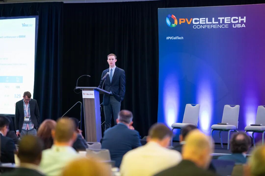 上周,天合光能受邀参加在旧金山举办的PV CellTech USA 2025大会,与来自全球的行业专家及领军企业共同探讨光伏技术的最新发展趋势。会上,天合光能美国区产品经理Ethan Ely发表主题演讲,分享公司在光伏技术领域的最新研发进展,包括i-TOPCon Ultra技术产品与钙钛矿叠层电池等前沿创新成果。
