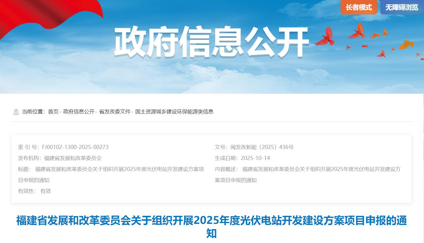 福建省发展和改革委员会关于组织开展2025年度光伏电站开发建设方案项目申报的通知