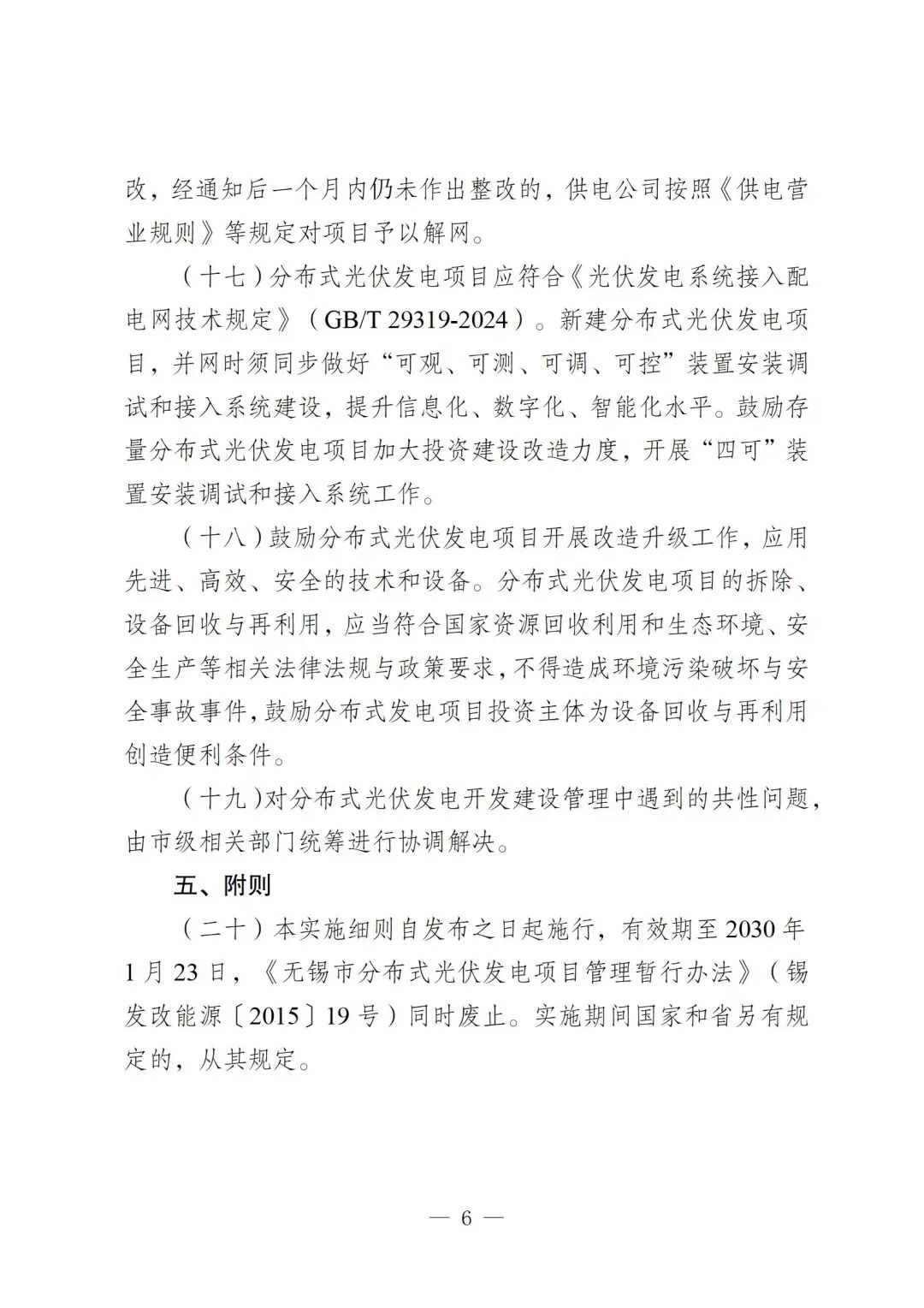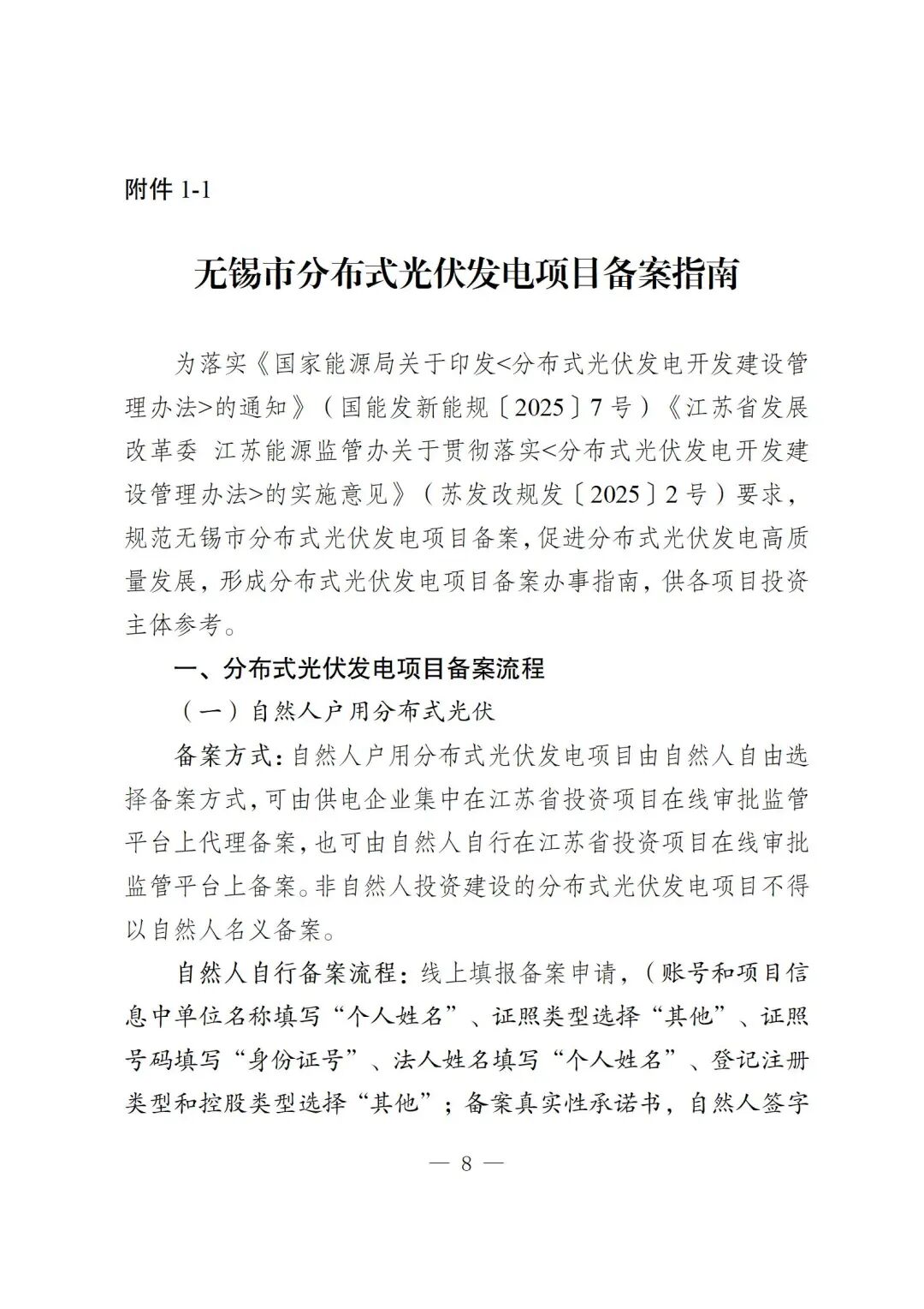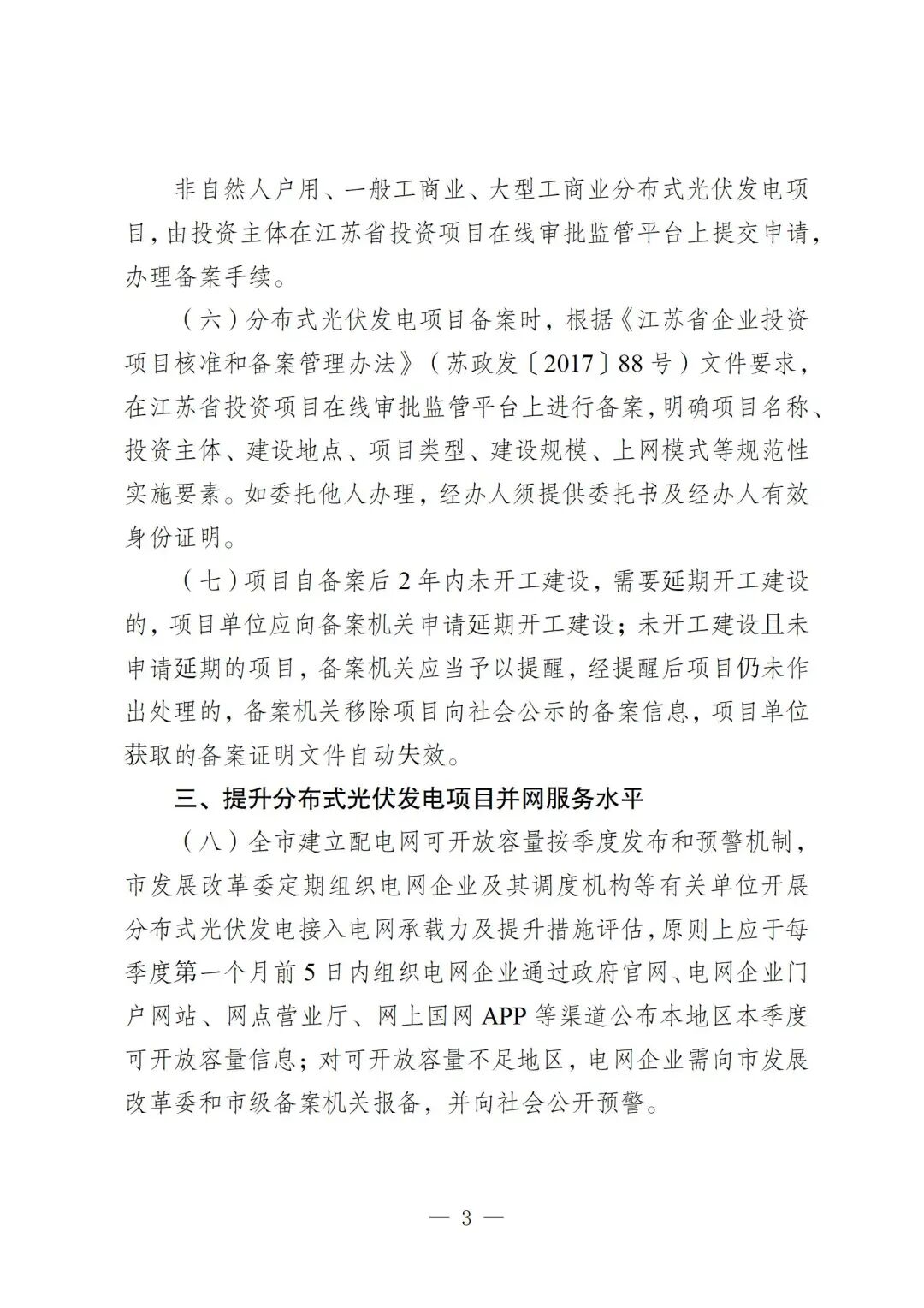 10月15日,无锡市分布式光伏发电开发建设实施细则印发。根据文件,非自然人投资开发项目不得以自然人名义备案,不得通过隐瞒场地租用关系以房屋产权人名义备案,后期从产权人名下账户提取发电收益等手段牟取利益。向备案机关提供虚假信息的,备案机关应根据《江苏省企业投资项目核准和备案管理办法》要求项目责令限期改正。项目自备案后2年内未开工建设,需要延期开工建设的,项目单位应向备案机关申请延期开工建设;未开工建设且未申请延期的项目,备案机关应兰予以提醒,经提醒后项目仍未作出处理的,备案机关移除项目向社会公示的备案信息,项目单位获取的备案证明文件自动失效。