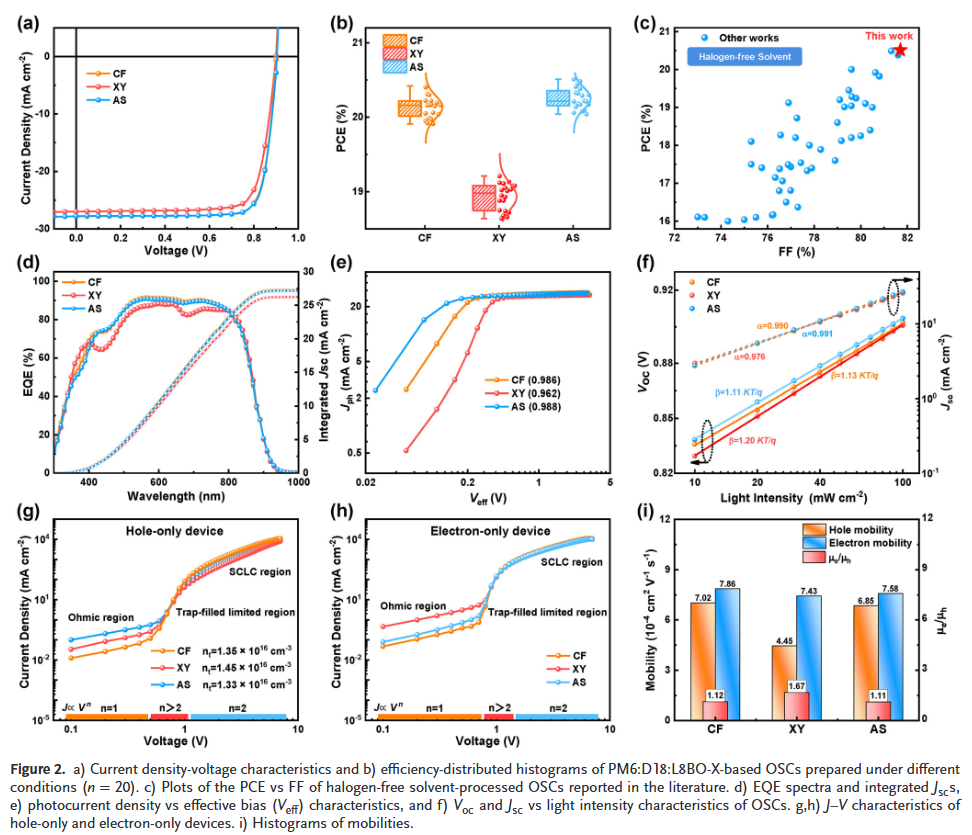 X. Duan, J. Zhang, J. Kong, et al. “ Over 20.5% Efficiency of Halogen-Free Solvent-Processed Organic Solar Cells Achieved by Anti-Solvent Strategy.” Adv. Mater. (2025): e14076.