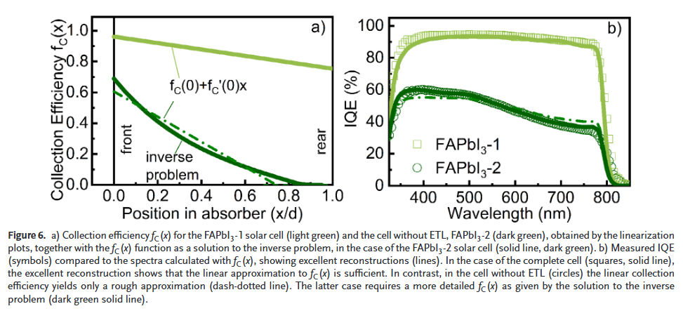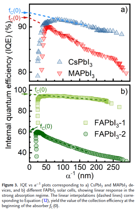 1.新型IQE线性化分析方法:通过强吸收与弱吸收极限下的IQE线性拟合,直接提取界面收集效率 fc(0)及其空间梯度,无需依赖瞬态测量或理想化假设。