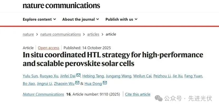 Sun, Y., Xu, R., Dai, J. et al. In situ coordinated HTL strategy for high-performance and scalable perovskite solar cells. Nat Commun 16, 9110 (2025).
