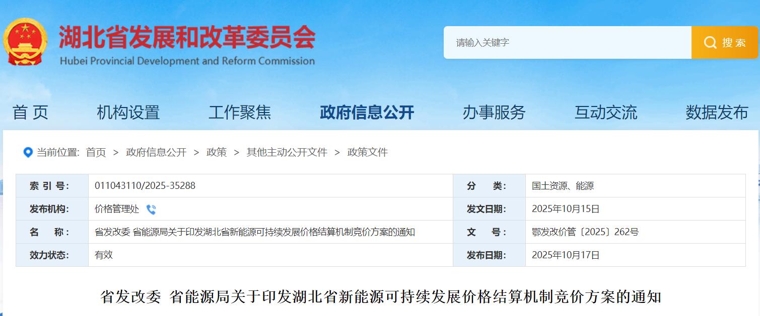 湖北省新能源可持续发展价格结算机制竞价方案
