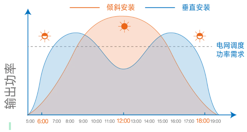 随着欧美、加洲等成熟电力市场逐步进入“光伏高渗透率” 阶段,午间时段集中爆发的光伏发电量与平缓的用电需求形成强烈错配,导致该时段电价持续走低,传统光伏电站的收益模式面临严峻挑战。与传统固定倾角或跟踪支架系统不同,垂直东西向安装的异质结组件以其独特的“双峰”发电曲线,精准匹配早晚用电高峰时段的电力需求,成功避开了午间电价低谷,实现了发电价值的大幅提升。