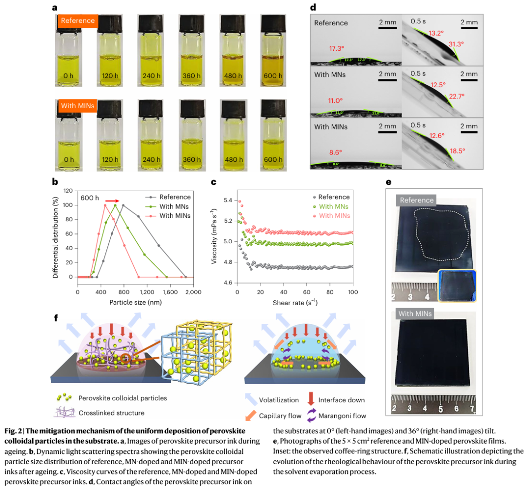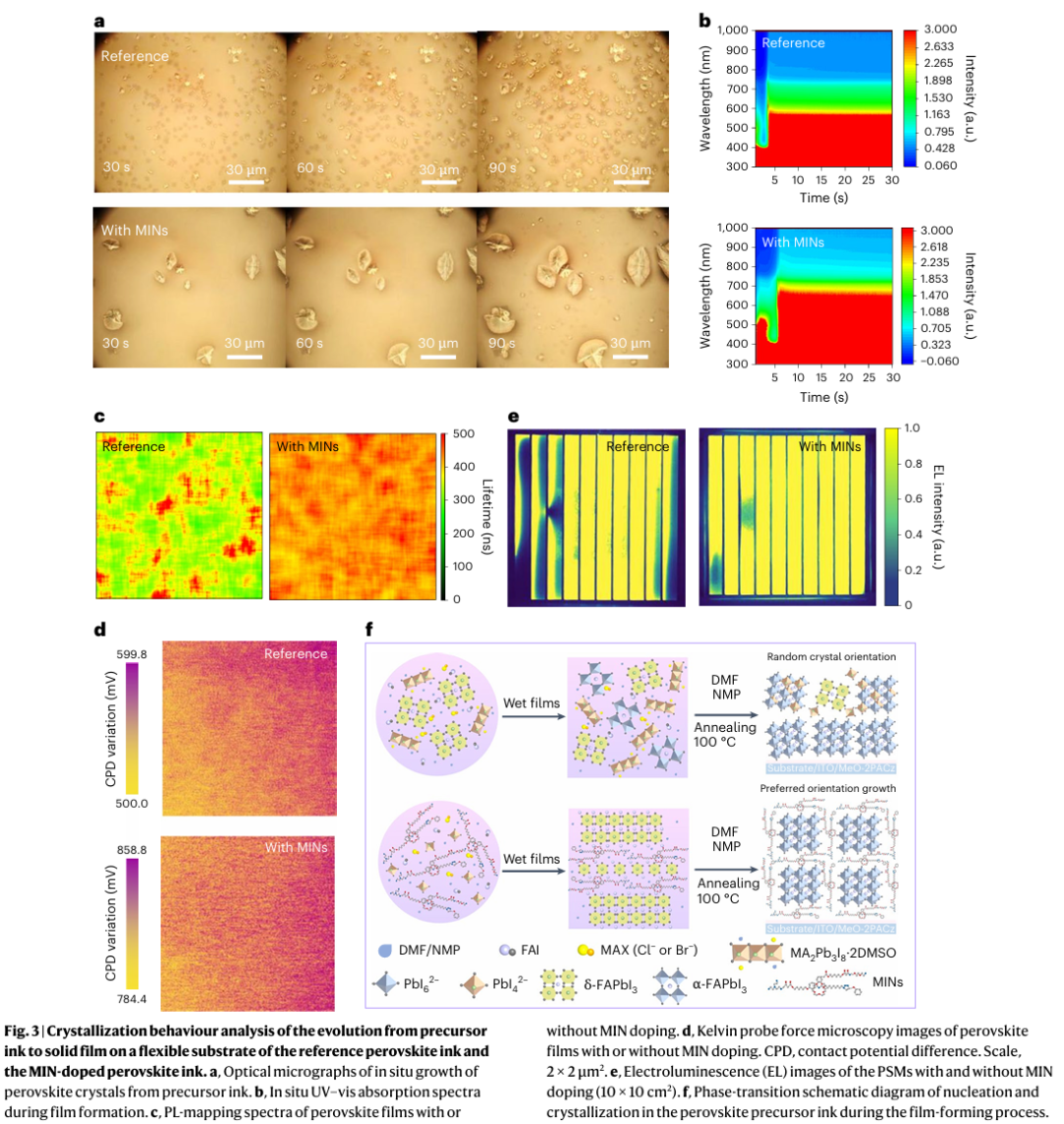 柔性钙钛矿太阳能电池可实现高效弯曲能量转换,推动下一代可穿戴设备发展。然而,从实验室规模原型向工业规模组件的转变,受限于印刷过程中钙钛矿胶体颗粒的不均匀沉积,导致功率转换效率下降。