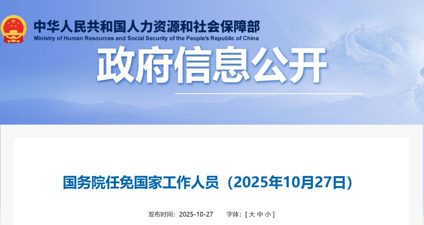 人力资源和社会保障部10月27日消息,国务院任免国家工作人员,其中任命庞骁刚为国务院国有资产监督管理委员会副主任。