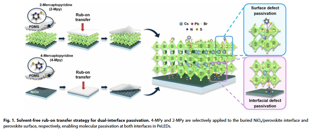 Jin Kyoung Park et al. ,Molecularly tailored dual-interface passivation via solvent-free rub-on transfer for efficient and stable perovskite LEDs.Sci. Adv.11,eady4671(2025).