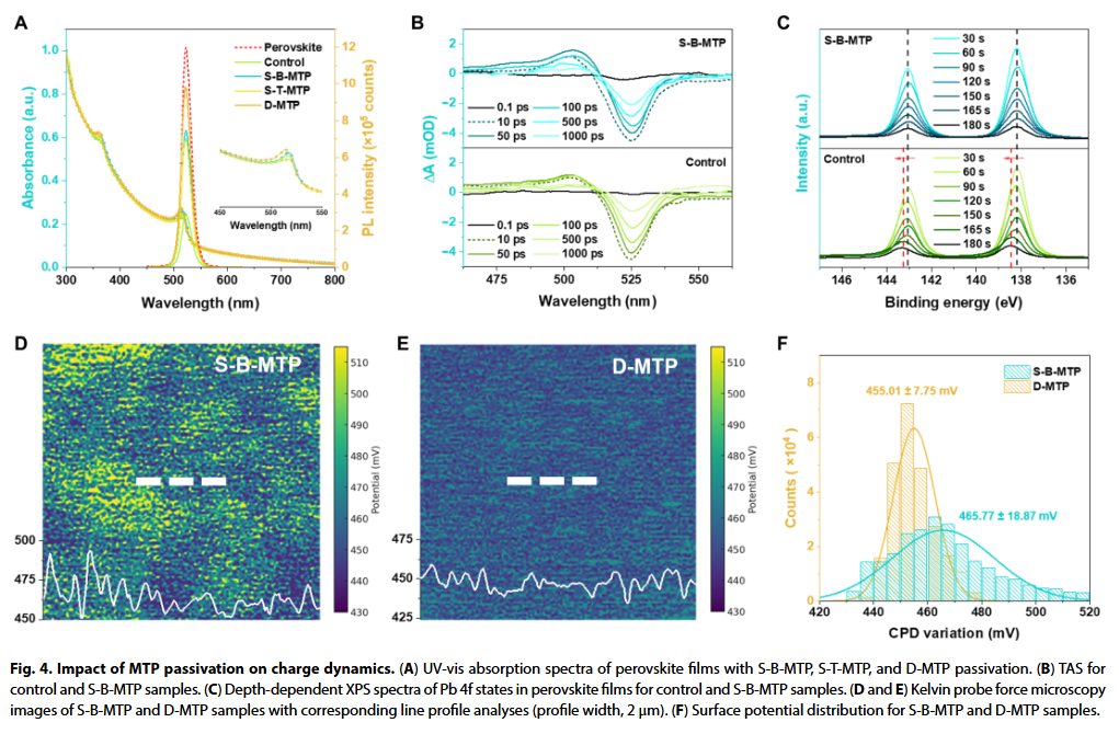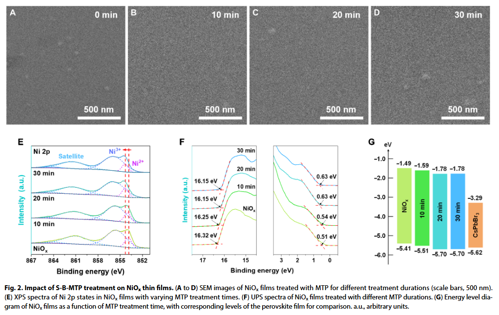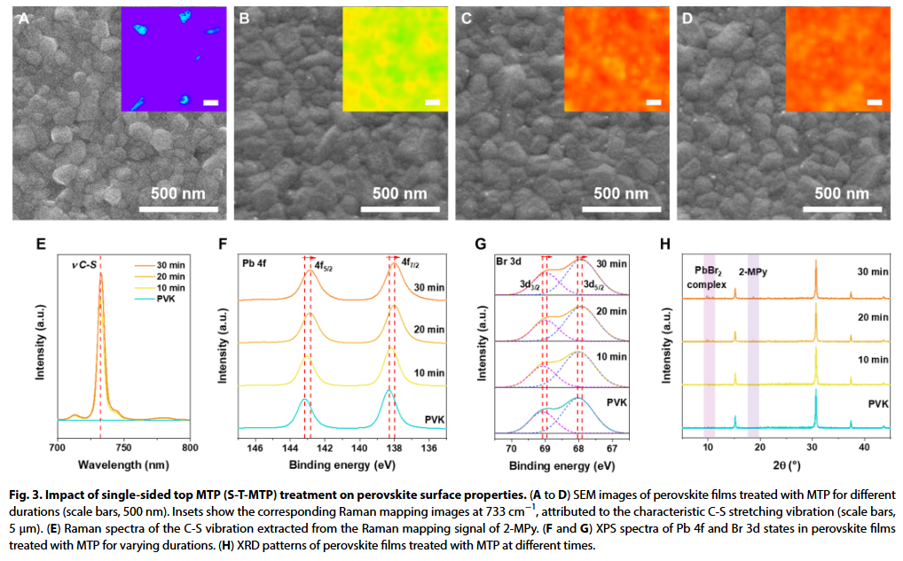 - 双界面异构体分子协同钝化机制4-MPy在NiOₓ界面稳定Ni³⁺并减少氧空位,2-MPy在表面通过双齿配位钝化Pb²⁺缺陷,形成宽带隙复合物增强载流子限域。