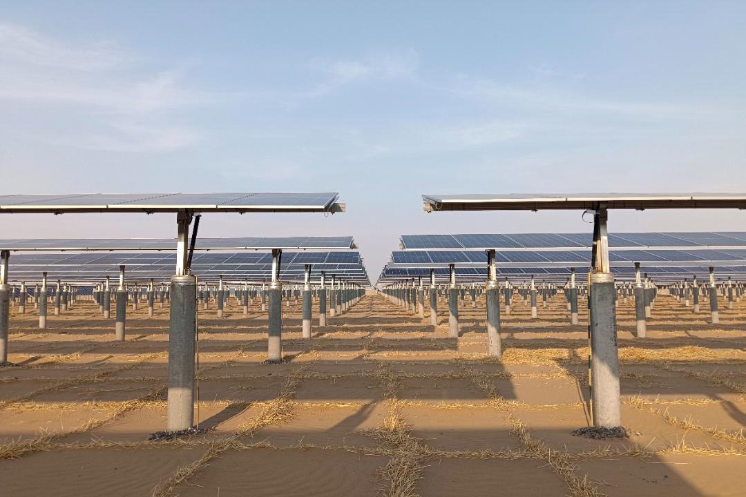 该项目全部使用隆基绿能Hi-MO 7组件。该产品基于更高的双面率(~80%)、更优秀的功率温度系数(-0.28%/℃)与较低的组件工作温度、更佳的抗光衰性能(首年衰减不高于1%)与弱光发电表现,特别适合应用于地表反射率高、环境温度高的荒漠戈壁,相对于市场其他双面组件发电增益可达3%,发电效率提升显著。
