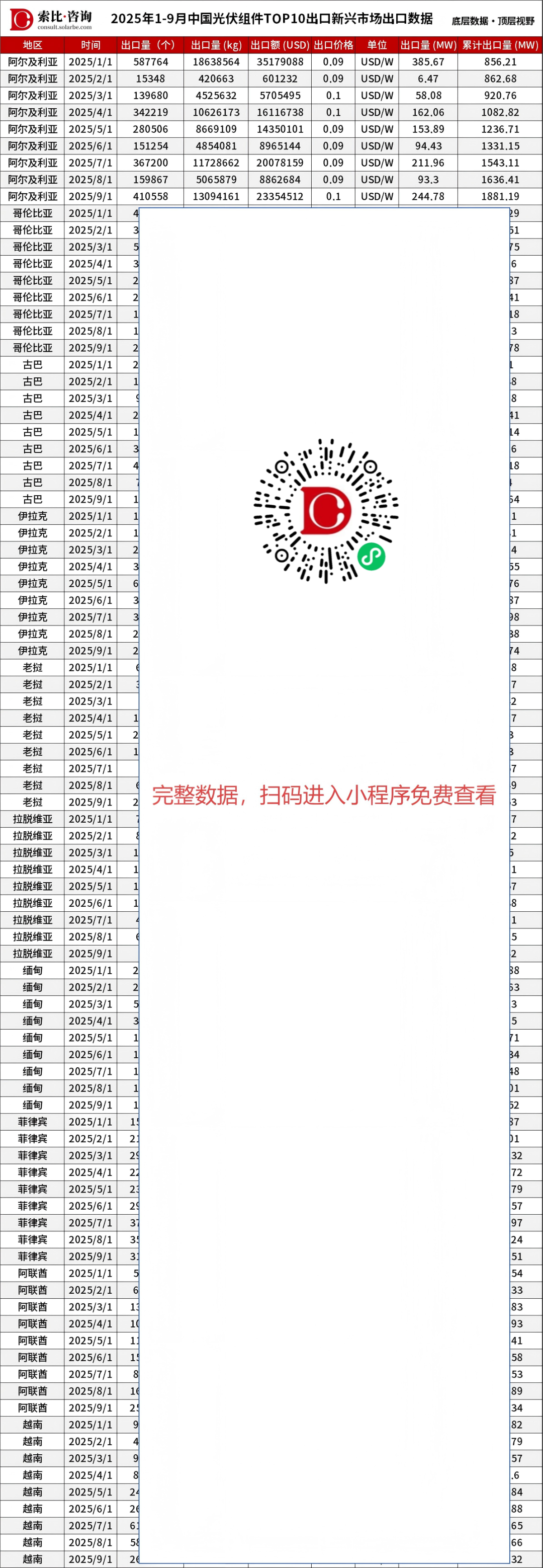 2025年1-9月,中国光伏组件总出口量达到191.7GW,同比增长4.1%。这表明全球能源转型带来的需求基本盘依然稳固。然而,增长势头在第三季度末出现放缓迹象,9月单月组件出口量24.6GW,环比下降4.3%。这主要是受欧洲、中东等传统采购主力需求减弱的影响,同时印度、土耳其等国在7-8月集中备货后,需求也阶段性回落。