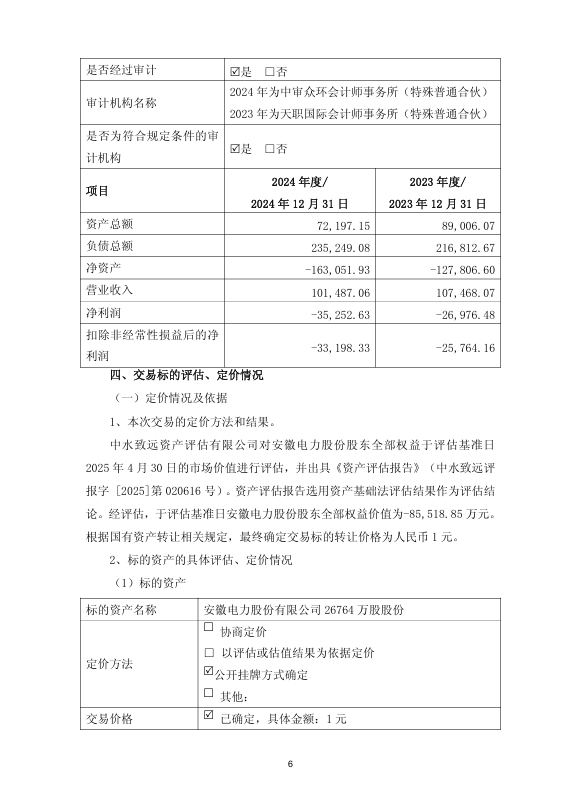 公告明确指出,收购旨在更好履行社会责任与民生保供责任,最大限度保护股东及相关方利益。尽管交易预计将导致公司合并口径归母净利润减少约 5.89 亿元(未经审计),但从长期来看,安徽电力股份可依托大唐发电在技术、管理等方面的专业优势,通过提质增效举措提升管理效能,逐步培育自主经营与可持续发展能力,摆脱经营困境。此外,通过全资控股区域核心供热企业,大唐发电进一步巩固了在安徽地区的能源市场地位,为后续拓展新能源业务、优化能源结构奠定基础,也为区域能源安全稳定供应提供了更有力的保障,符合国家能源发展战略与民生需求导向。