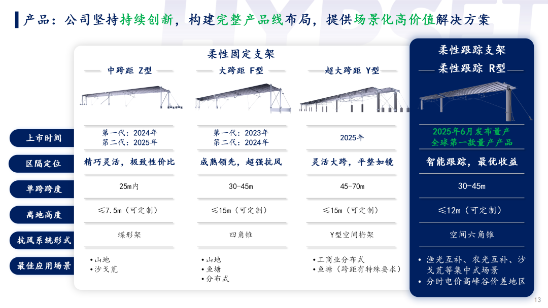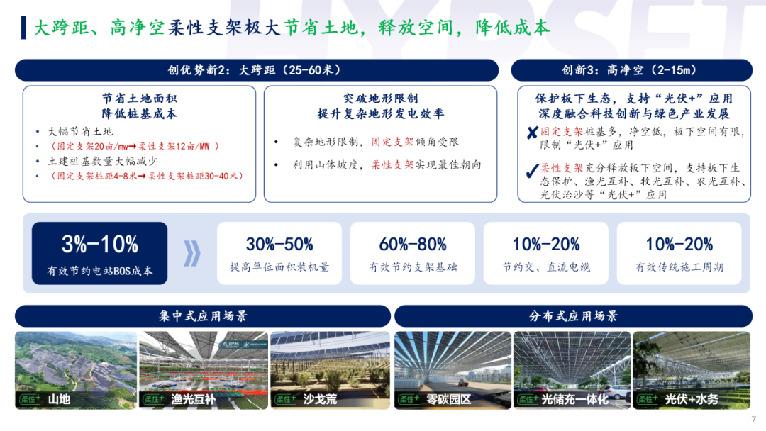 HYPSET核心竞争力源于持续的技术创新和产品迭代。公司自研的索结构柔性光伏支架系统,通过工程力学+风洞+实证项目的多重验证,解决了柔性支架体系在大跨度、高净空、大阵列条件下的稳定性与施工应用问题,实现“轻量化、强抗风、高适配、低全生命周期成本”的组合优势。