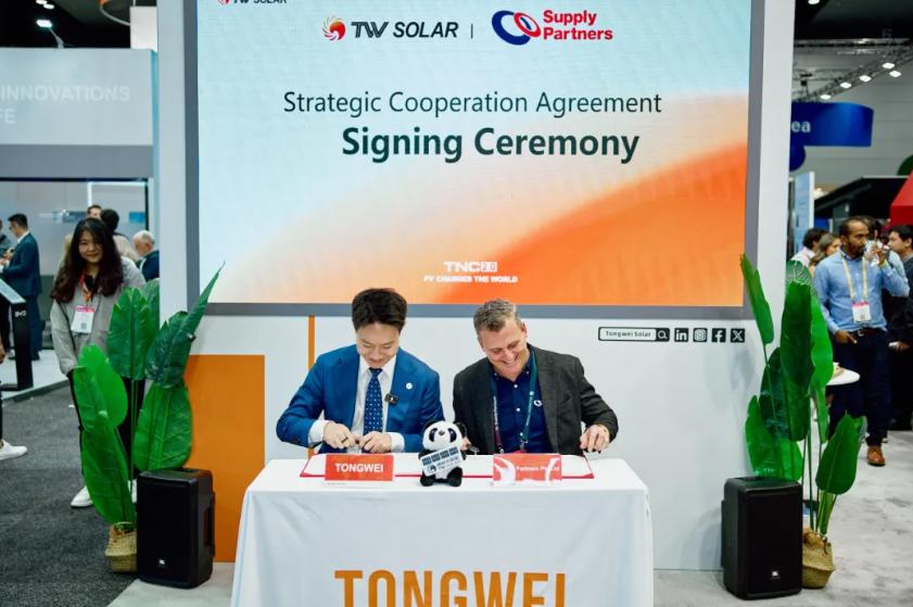 活动现场,通威与Supply Partners签署合作协议,Supply Partners创始人Liam Ricketts、通威股份光伏商务部组件营销海外负责人陈方舟代表双方签署协议,双方将在渠道拓展、市场共建与项目开发等领域深化合作,进一步推动 TNC 2.0 系列产品在澳洲地区的广泛应用。