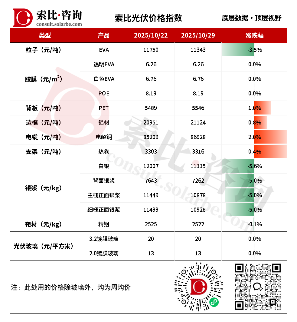 1、数据均为索比咨询整理,价格为均价,有疑问请联系我们,欢迎探讨