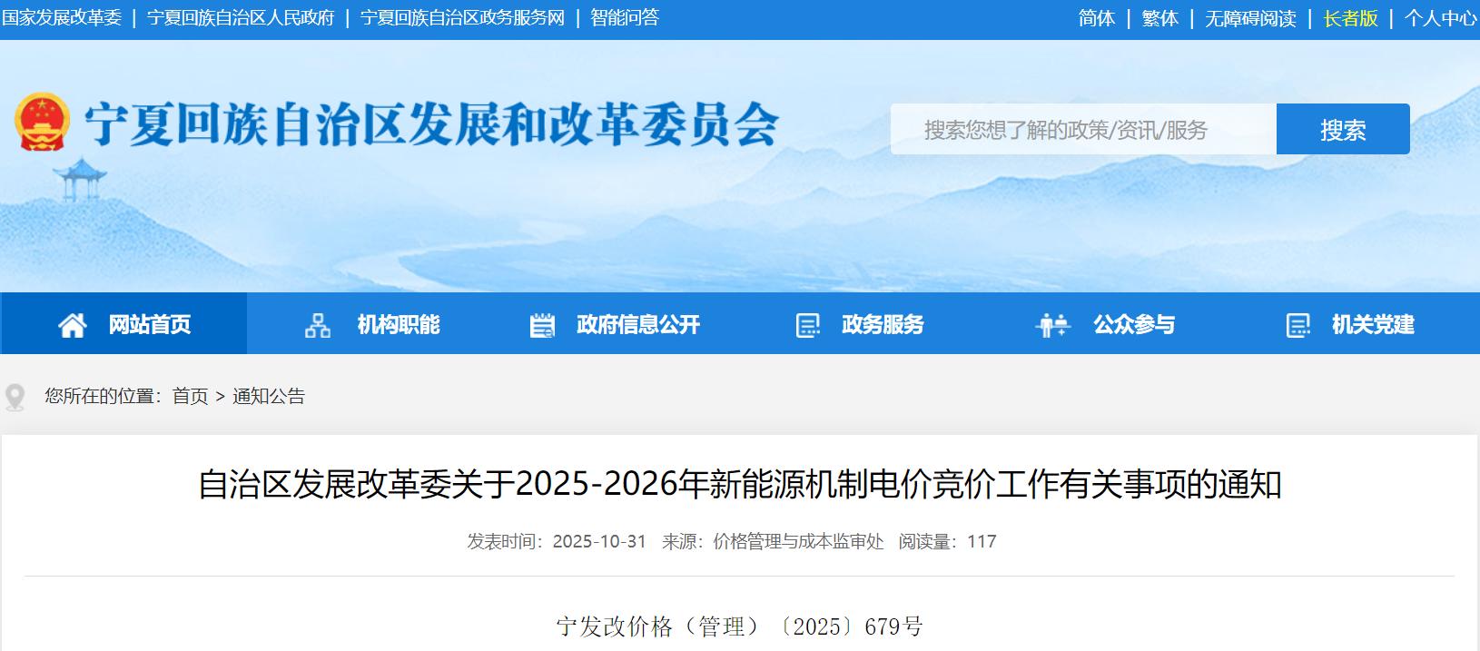 10月31日,宁夏发改委印发《关于2025-2026年新能源机制电价竞价工作有关事项的通知》,正式启动2025-2026年新能源机制电价竞价工作。