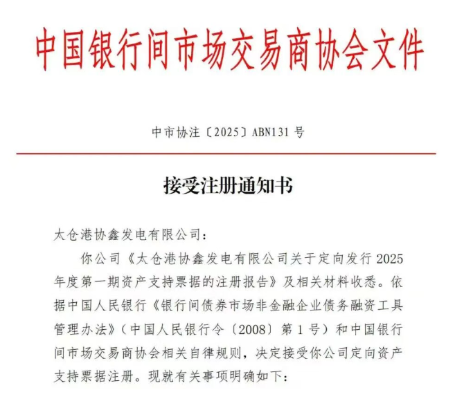 10月29日,协鑫集团旗下太仓港协鑫发电有限公司成功获得中国银行间市场交易商协会出具的《接受注册通知书》,资产支持票据(ABN)注册金额达45.3亿元。这一成果不仅创下今年供电供热类资产支持票据的最大规模纪录,更成为民营能源企业在资本市场创新融资的标杆案例。