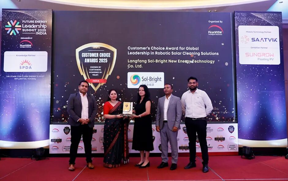 在展会期间的颁奖典礼上,思拓新能源凭借其卓越的产品性能和创新的技术方案斩获主办方颁发的 “全球领先的机器人太阳能清洁解决方案客户选择奖” 荣誉称号。