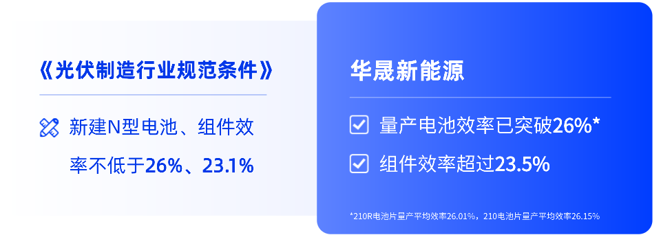 华晟新能源长期专注于高效异质结(HJT)技术的研发与规模化应用。华晟量产电池效率已突破26%,组件效率超过23.5%,其产品性能不仅满足更是远超《规范条件》中对高效产品的指标要求。通过持续的技术迭代与工艺优化,华晟不断推动光伏产品的性能边界与度电成本优化,为全球客户创造长期稳定价值。