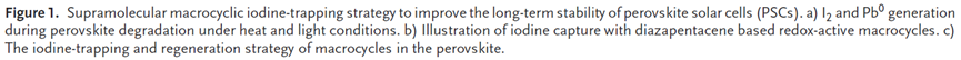 1.图一系统性地阐释了利用超分子大环捕获碘策略以提升钙钛矿太阳能电池长期稳定性的机理。