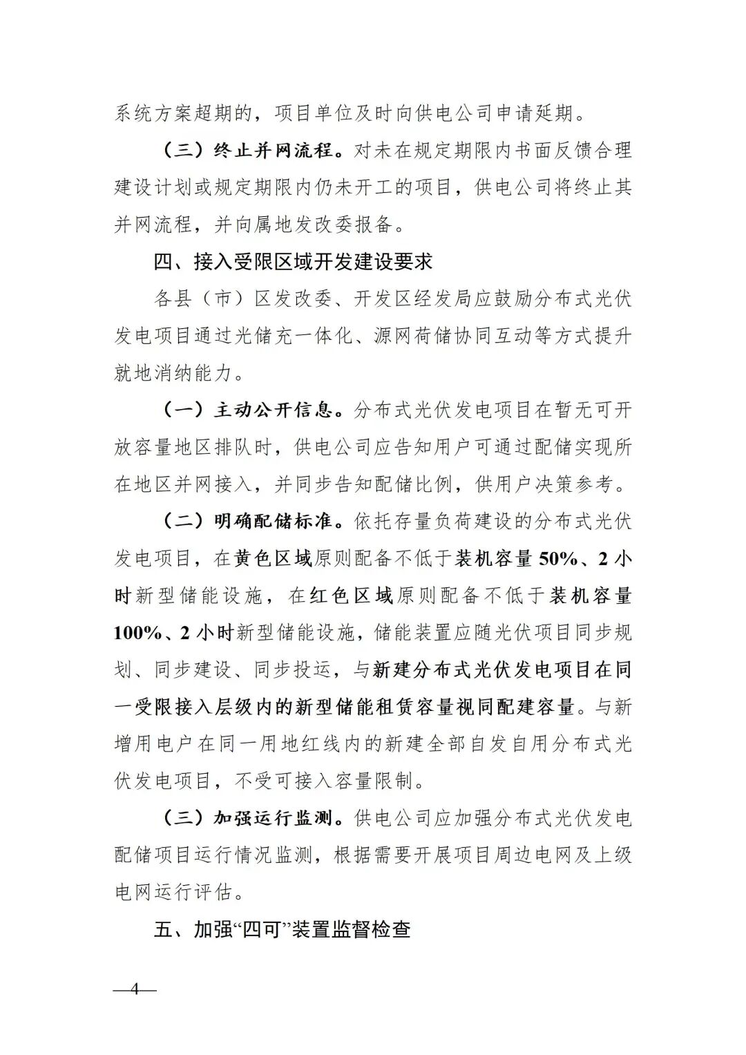11月3日,安徽合肥市发改委发布关于公开征求《合肥市发展改革委关于进一步规范分布式光伏发电开发建设及运行管理工作的通知》意见建议的公告。文件指出,依托存量负荷建设的分布式光伏发电项目,在黄色区域原则配备不低于装机容量50%、2小时新型储能设施,在红色区域原则配备不低于装机容量100%、2小时新型储能设施,储能装置应随光伏项目同步规划、同步建设、同步投运,与新建分布式光伏发电项目在同一受限接入层级内的新型储能租赁容量视同配建容量。