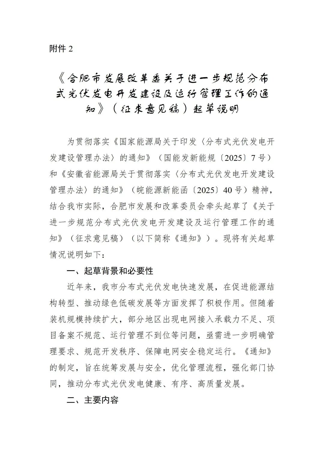 附件:1.合肥市发展改革委关于进一步规范分布式光伏发电开发建设及运行管理工作的通知(征求意见稿).doc
