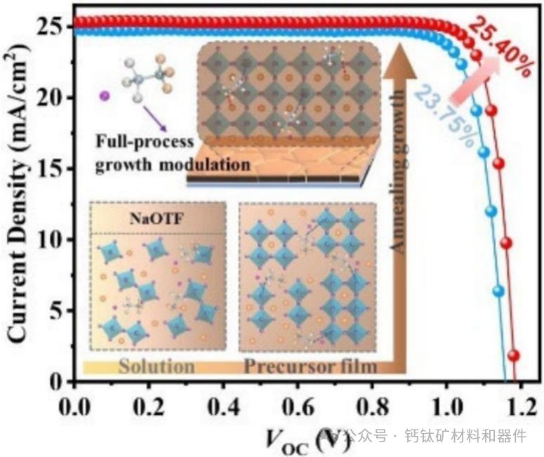 使用NaOTF调节薄膜制造的器件实现了25.40%的功率转换效率(PCE),并具有出色的作耐用性—在环境照明老化2040小时后仍能保持约89.5%的初始效率,在N₂气氛下在85°C下热应力504小时后仍能保持84.5%的初始效率。