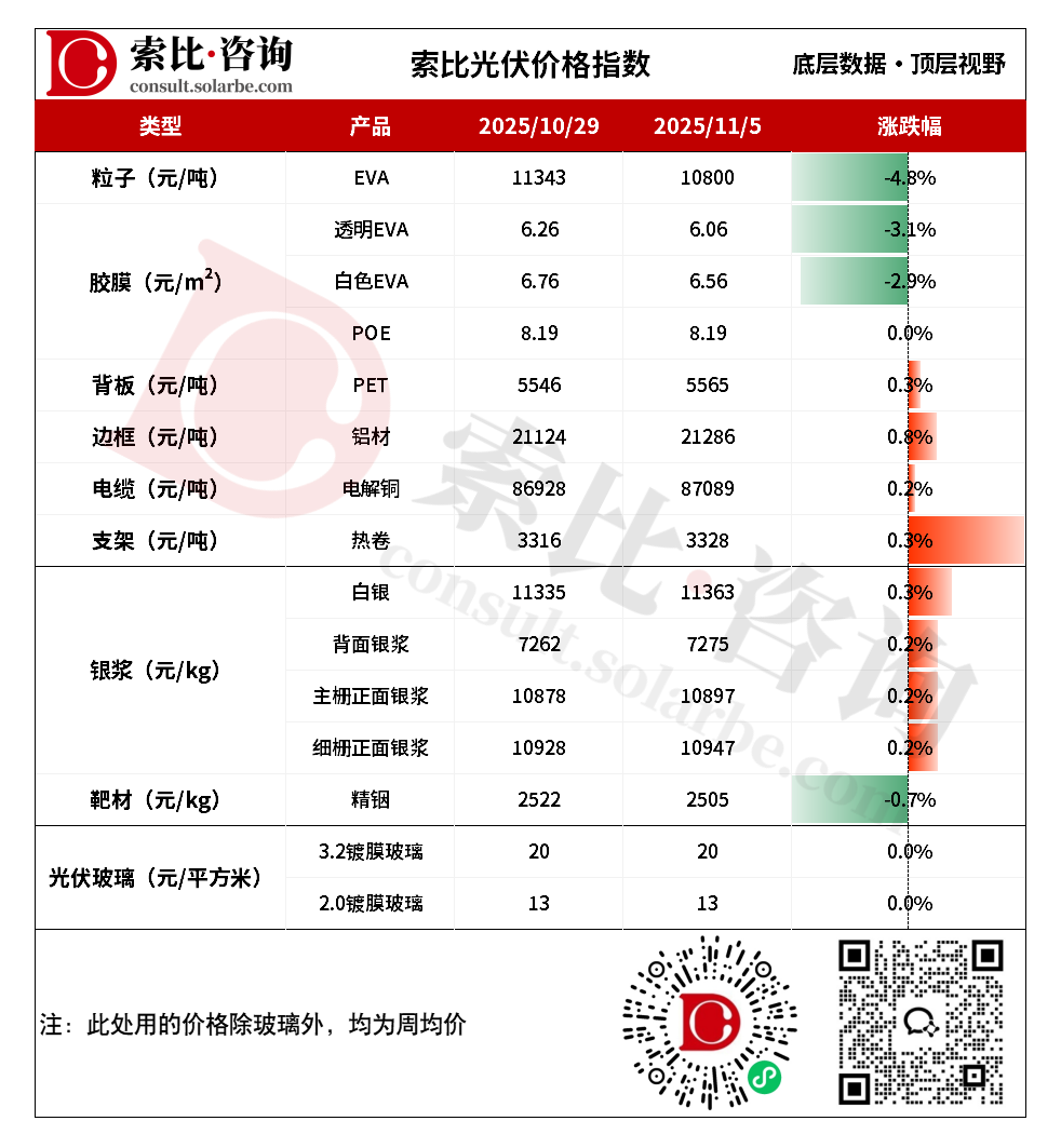 1、数据均为索比咨询整理,价格为均价,有疑问请联系我们,欢迎探讨