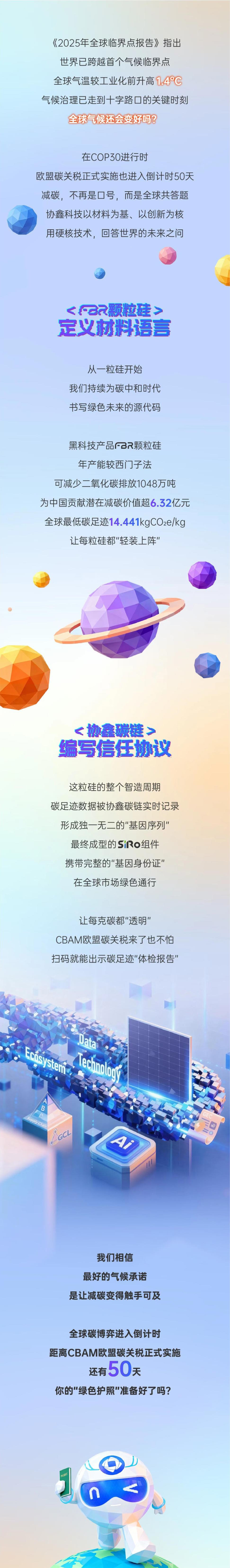超越光伏,共同构建坚韧的零碳世界如今,碳中和浪潮席卷全球。2024年,隆基共实施477项节电技改项目,预计年节电4.26亿度,相当于减排25万吨二氧化碳。不仅如此,隆基一贯认为,应对气候变化关乎全人类未来命运,生物多样性关系人类福祉,是人类赖以生存和发展的重要基础。