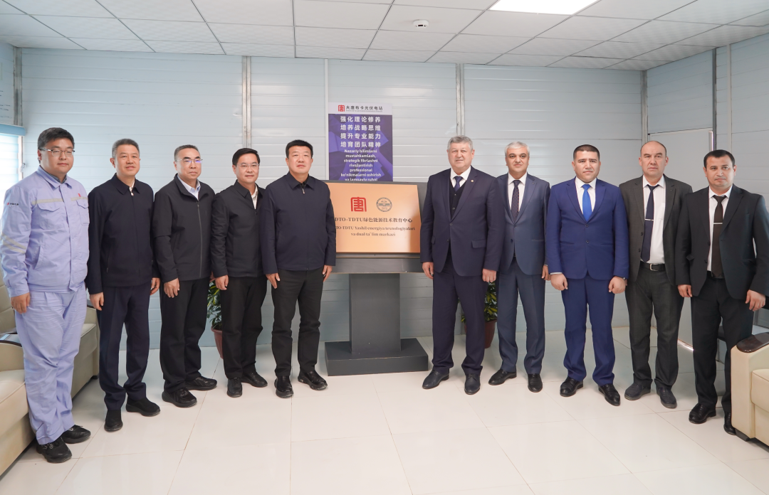 调研期间,吕军在布卡光伏项目现场,与塔什干国立技术大学校长、院士萨德里丁·马哈马托维奇举行会谈,并共同为“大唐海投-塔什干国立技术大学绿色能源技术教育中心”揭牌。该技术教育中心后续将为塔什干国立技术大学毕业生提供实习实训机会,助力乌兹能源电力人才培养。